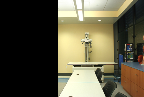 The X-ray Labs at the Miami Dade College Medical Campus has brought new life to the Radiology program by transforming the existing 1974 classroom in to a new 1,500 s.f. state-of-the-art radiology department. The central classroom with its high ceilings and large exterior windows provide a practice simulation patient table and control areas that are open to the double X-ray training rooms and CT Simulator room. The X-ray labs and central classroom encourages students to learn the necessary skills in the Radiology profession, which are accommodated by the architectural character of the spaces.